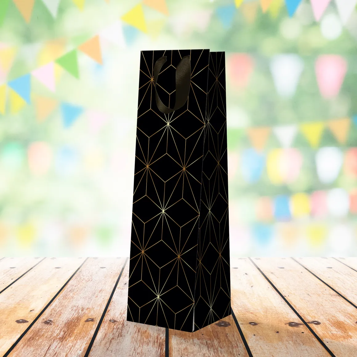 Le Sac Bouteille de Vin – Noir et Or est l’accessoire idéal pour offrir une bouteille de vin de manière élégante et raffinée. Conçu spécialement pour les bouteilles de vin, ce sac combine un design moderne en noir et or, mettant en valeur l’élégance de vos cadeaux. Son papier certifié FSC et son impression à l’encre végétale respectent l’environnement tout en garantissant une qualité d’impression haut de gamme, notamment grâce à la technique d’impression or à chaud.