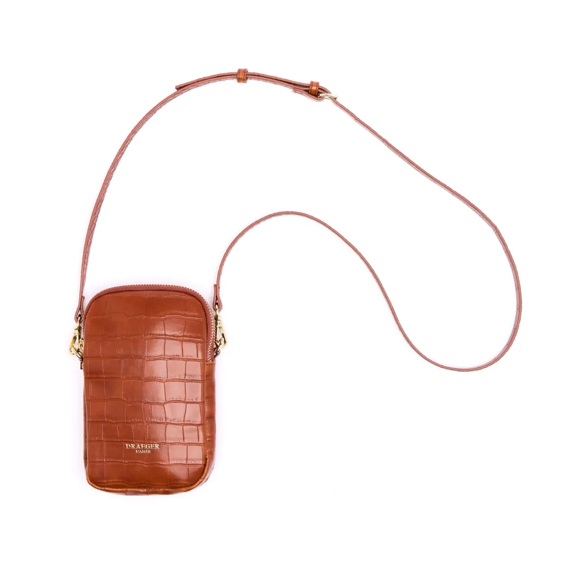Sac Finition Croco|Pochettes De Téléphone*Draeger Paris Pochette de Téléphone Croco – Cognac