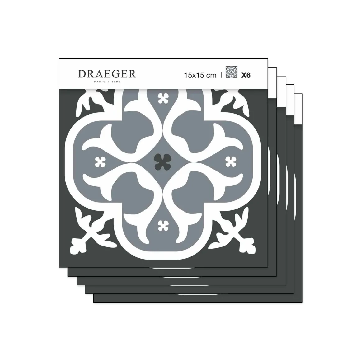 - Lot de 5 Stickers carrelage 15×15 cm Lys Noir