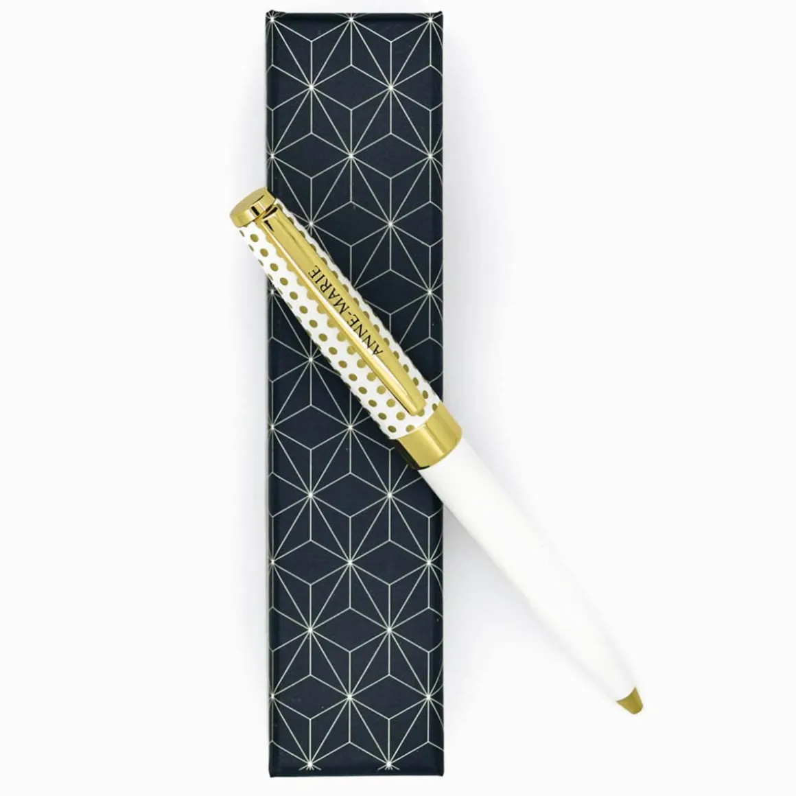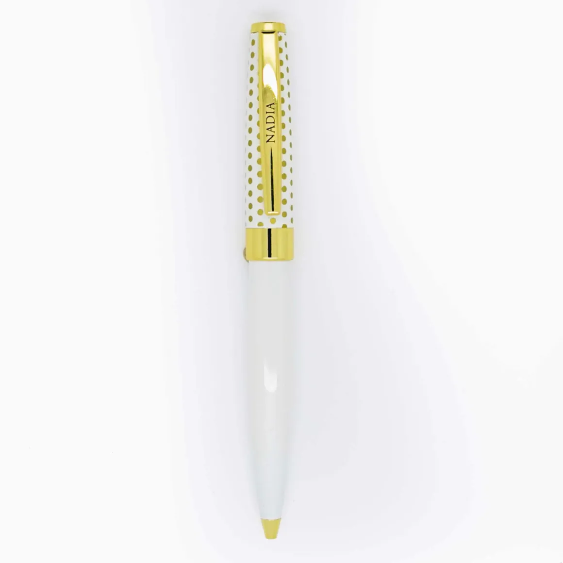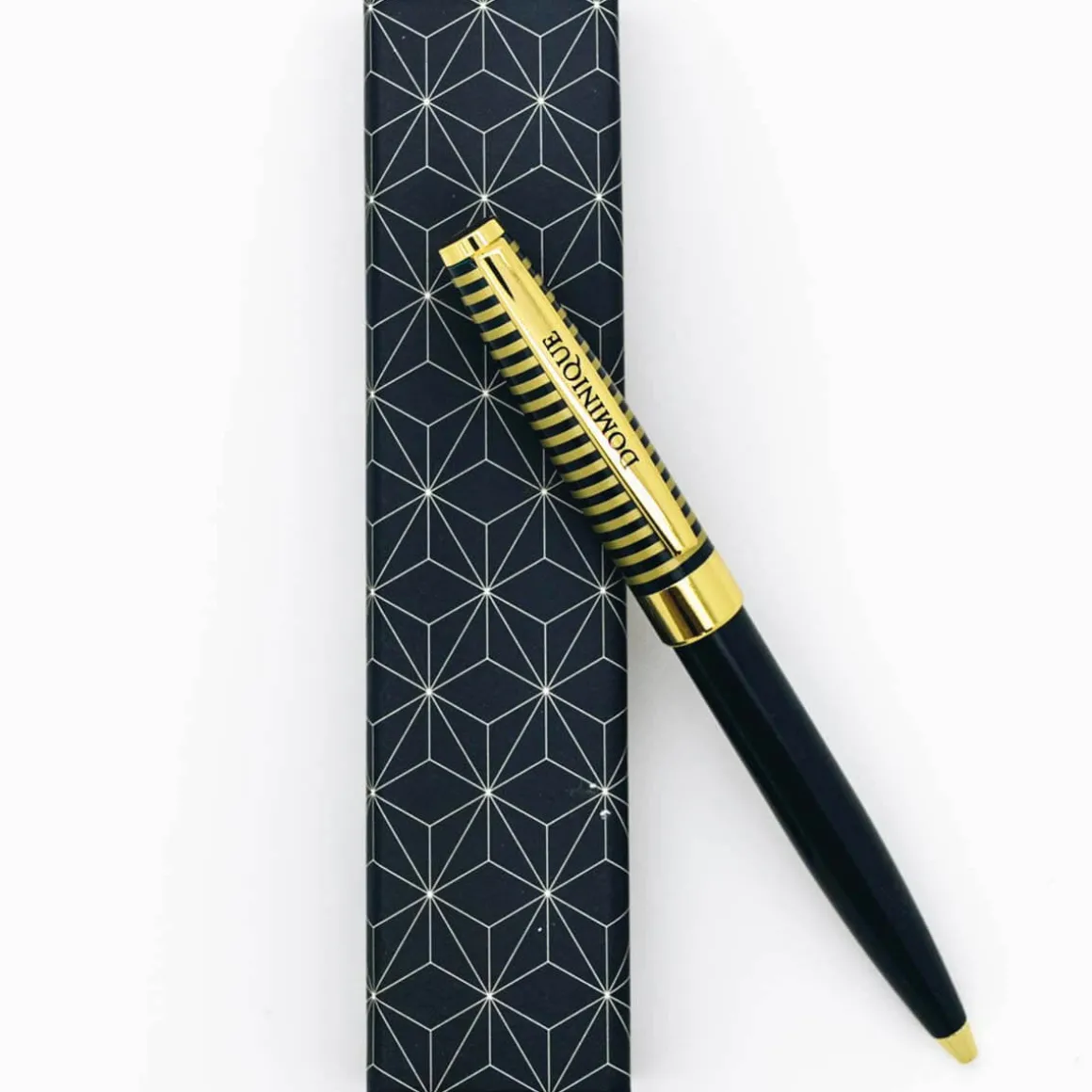 Ne loupez aucune occasion pour faire profiter votre cercle amical ou familial de cadeaux personnalisés. Ce stylo à bille rétractable offre une qualité d’écriture optimale. Chaque prénom est gravé en lettres capitales. Sobre et élégant, ce stylo à encre noire permettra à son propriétaire de tout noter avec style. Il est livré dans un joli écrin sur lequel est inscrit un message décrivant les principaux traits de caractères liés au prénom. C’est le cadeau parfait pour être sûr(e) de faire plaisir à un collègue, un ami, un frère ou à un amoureux.