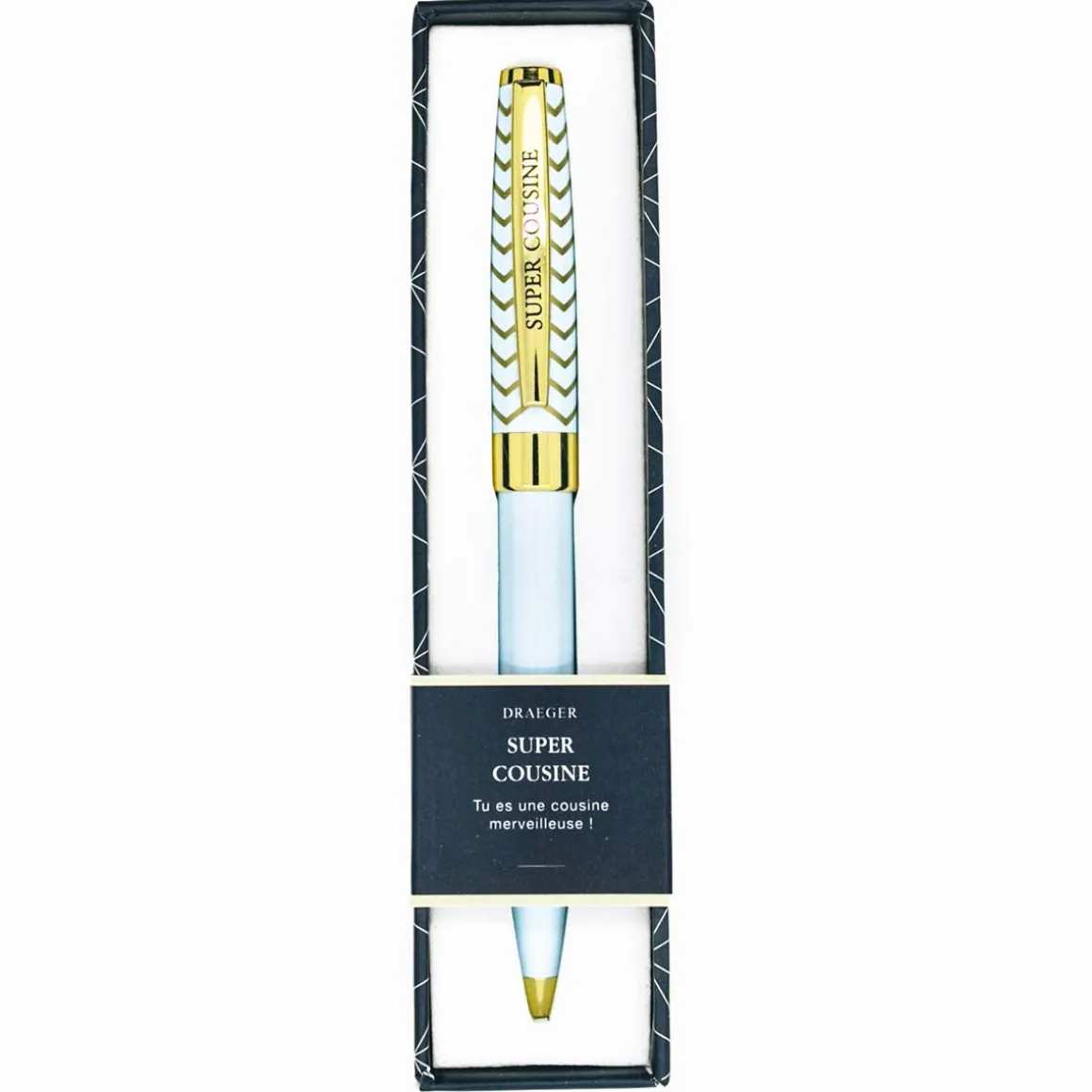 Faites plaisir à votre cousine préférée avec ce stylo à bille rétractable de la collection Pastel Chic. Son tracé fluide, son ergonomie légère et sa qualité graphique la raviront sans aucun doute. Avec sa couleur bleu nuit et ses motifs modernes, elle n’en sera que plus enchantée. Transportable partout, elle l’emportera partout grâce à son écrin design et personnalisé.